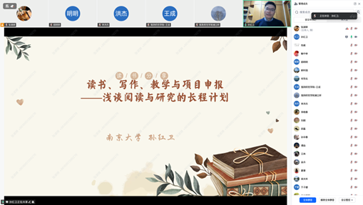 2025年12月4日晚7点,南京大学外国语学院孙红卫老师做客外国语学院第二十五期“思·语”学术沙龙,作题为《读书、写作、教学与项目申报——浅谈阅读...