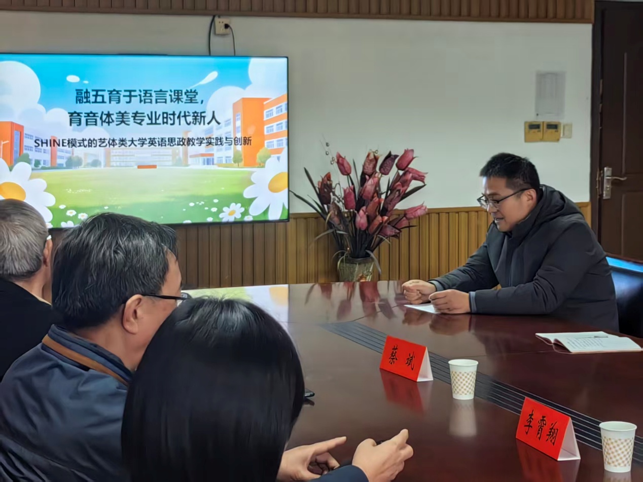2025年12月26日下午,外语学院在弘文1-213举办教学创新大赛专家指导会,教学创新大赛国赛一等奖获得者、江苏科技大学外国语学院英语系系主任王欢博士、教学创新大赛资深评委、江苏省高等学校外国语教学研究会会长东南大学李霄翔教授、河海大学蔡斌教授应邀莅临我院,我院魏磊教授、参加教学创新大赛的赵荣斌老师、陈雄洪老师参加了指导会,会议由浦立昕院长主持。