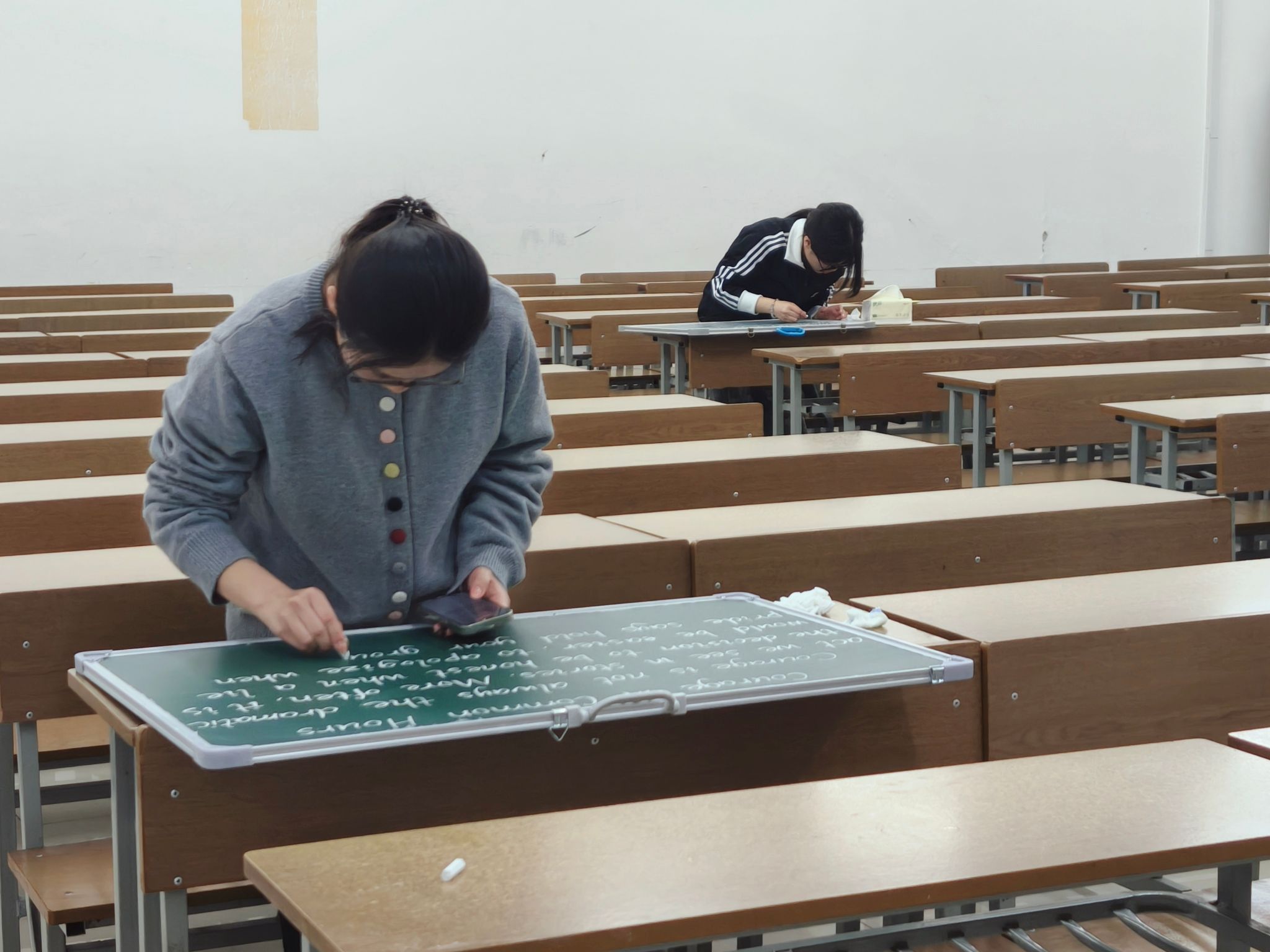 本次决赛以“雷锋精神与周恩来崇高精神风范”为书写主题,弘扬榜样担当精神。比赛分为硬笔组与粉笔组,采用现场创作、匿名评分的形式,全程公开透明,保障评审公平公正。比赛开始后,选手们认真审题、凝神书写,一笔一画尽显工整规范,字母线条流畅舒展,在规范书写中展现英文之美,在笔墨之间传递榜样力量。评委从书写规范、卷面整洁、主题契合、艺术美感等方面综合打分,评选出优秀作品。