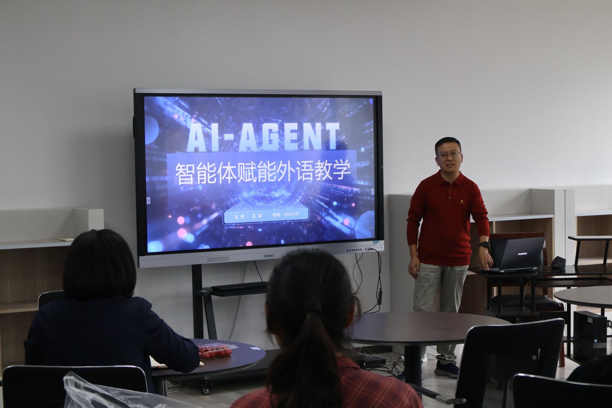 随后,王成主任以“AI智能体赋能教学创新”为主题,深入阐述了人工智能技术在教育领域的应用前景。他指出,AI智能体以“感知—决策—行动—记忆”为核心机制,通过融合多技术实现人类思维的数字映射,构建集教学设计、实施与评价于一体的智能Agent库。他还介绍了单智能体与多智能体在教学中的应用案例,倡导推动教学模式向“师—智—生”融合的智能化新形态转变,助力实现个性化、情感化的智慧教育。