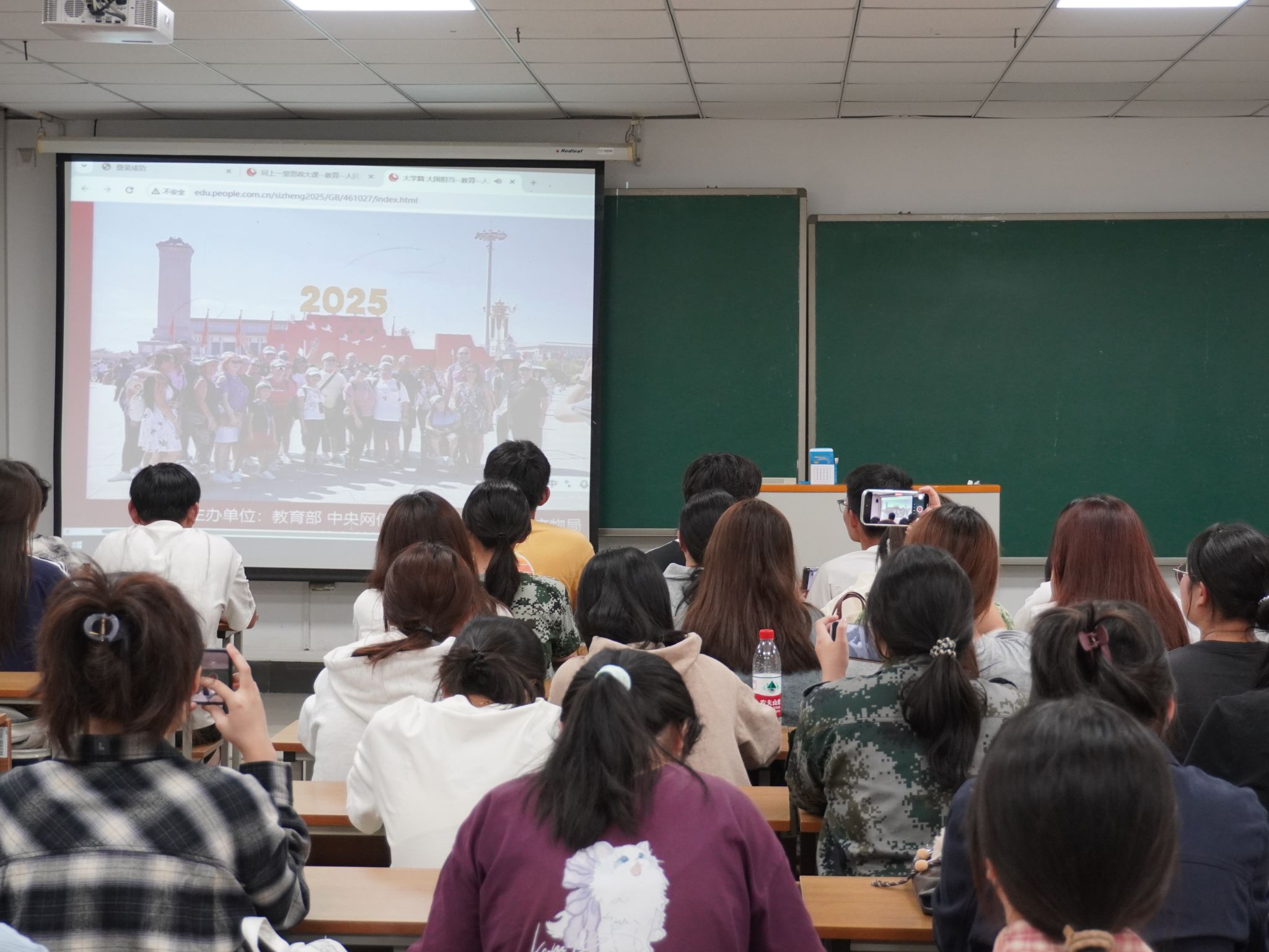 活动伊始,同学们以“民族团结一家亲,同心共筑中国梦”为核心,在专题课件的引导下,系统回溯中华民族历史渊源,剖析其在当代的价值内核,于历史与现实的映照中厚植文化认同。紧接着,《同看一堂思政课》的展播,从先进武器装备的科研突破、军事人才的梯队建设到军民融合的战略布局,立体呈现了国防作为国家发展“压舱石”的关键意义,使学子们对国防建设的系统性与重要性有了具象化认知。一名外语专业学生在交流中谈到:“我们将以语言为媒介,在国际语境中讲好中国国防故事,传递和平发展理念,为提升全民国防素养贡献专业力量。”