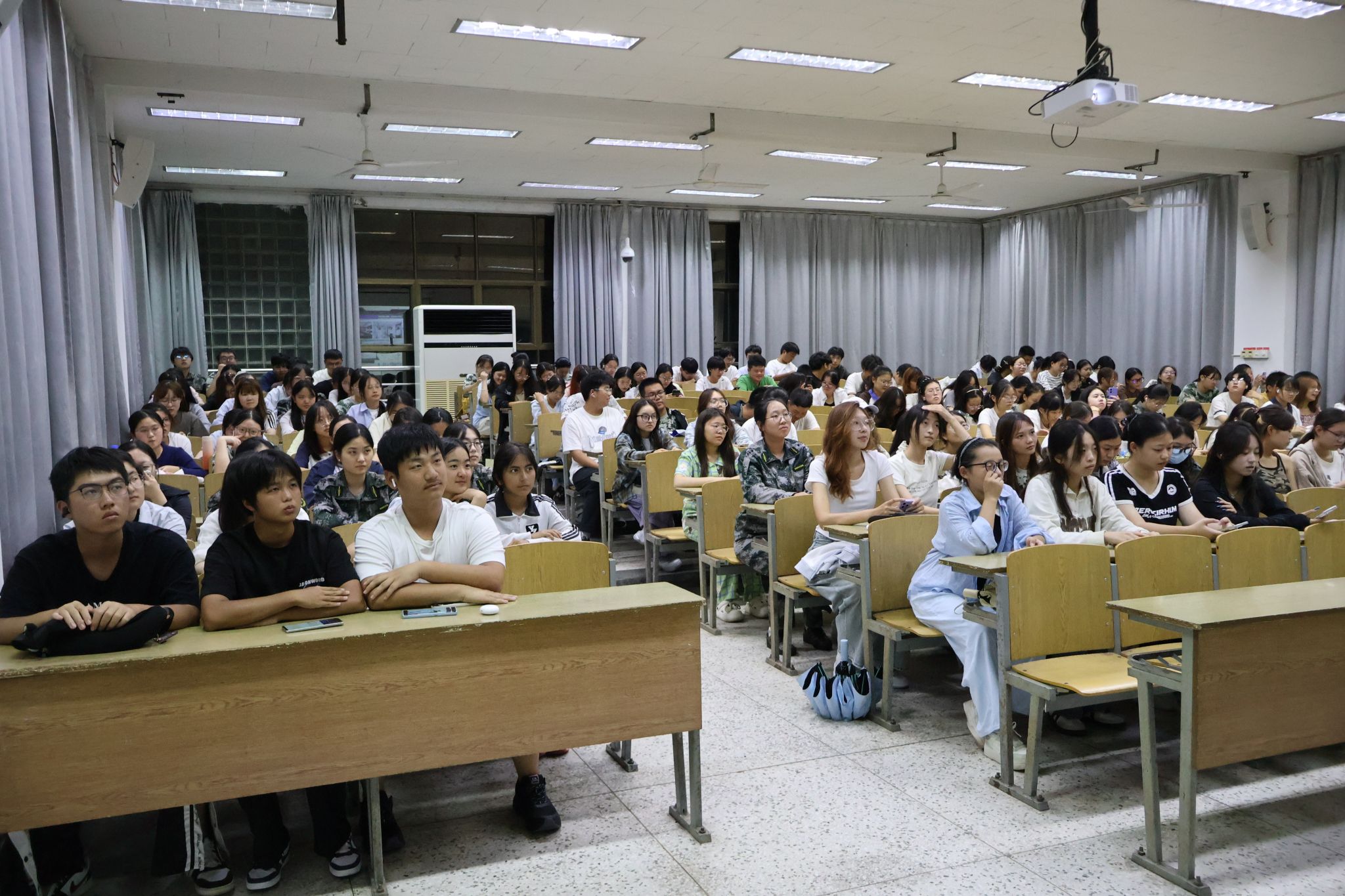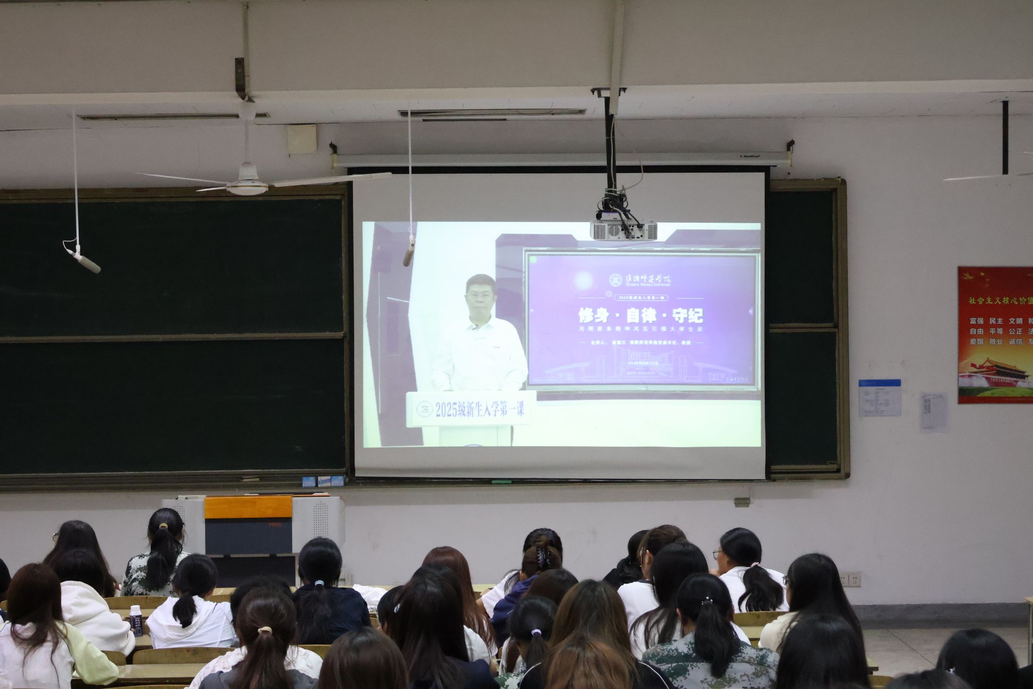 为了使新生尽快适应大学生活,了解校园文化,明确未来奋斗目标。9月17日晚7点,外国语学院组织2025级全体新生观看了开学第一课。本次活动以“修身•自律•守纪—用周恩来精神风范引领大学生活”为主题,由淮阴师范学院党委书记赵宜江给全体新生讲授。